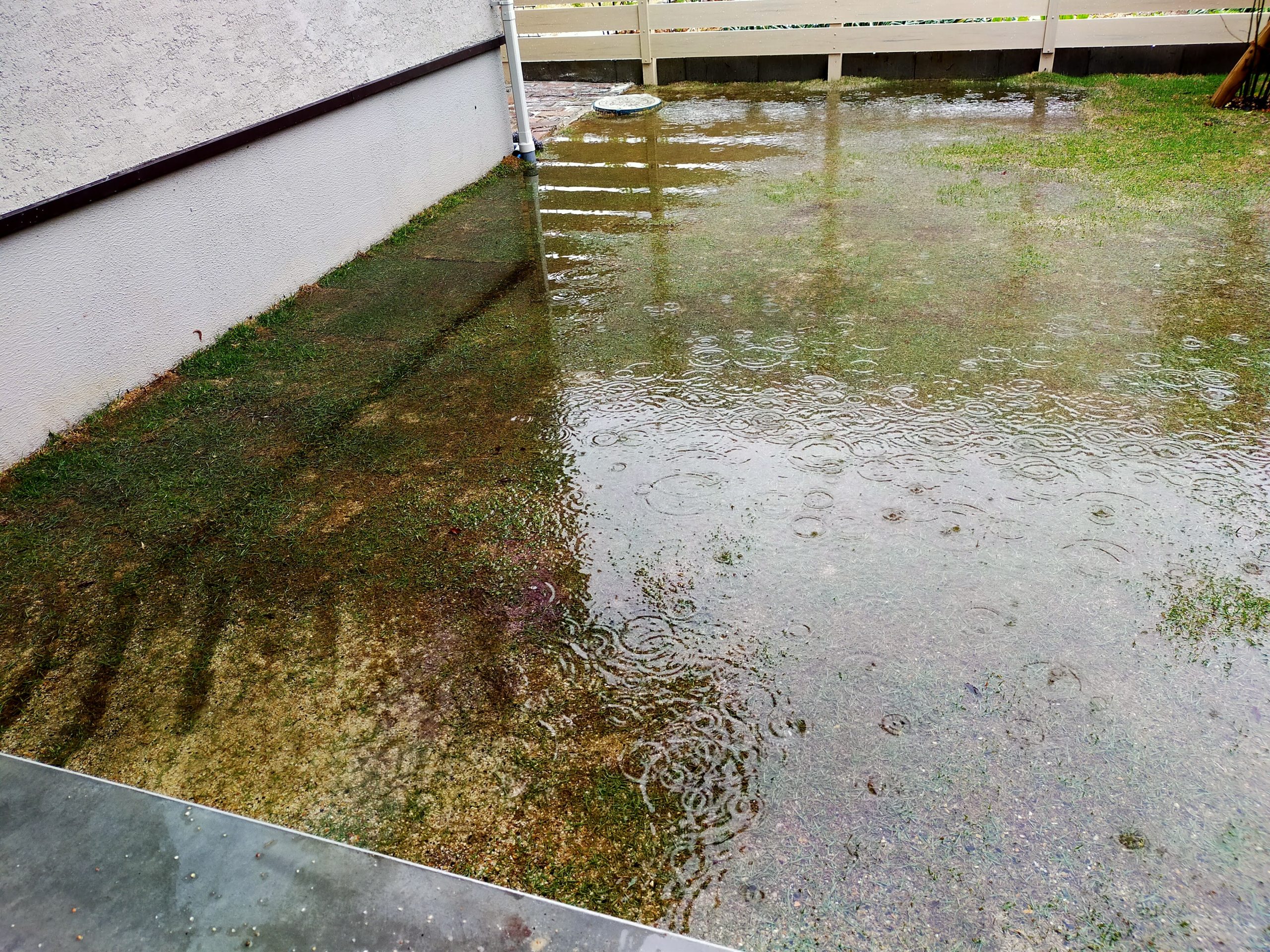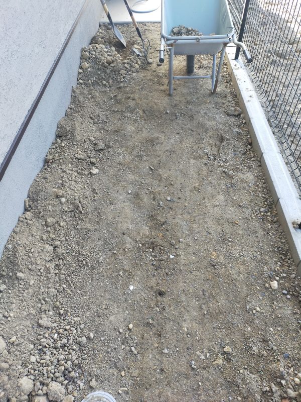 勾配つけて水が流れるようにしないといつまで経っても水溜まったままやったり、転圧って言って地面固めてから砂利とか芝とか防草シート敷かないとデコボコなったり、頭では理解しててもそれを実行するのがめっちゃ難しい!