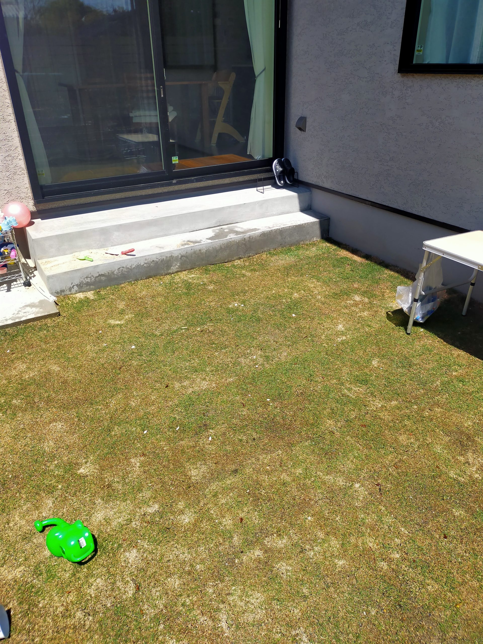 実際は、芝生の水はけも悪いし、虫もめっちゃ出る、芝生のカスで家汚れるしで