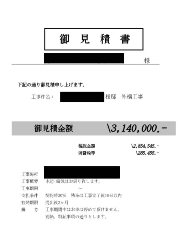 で実際それくらい確保してたけど、出てきた見積これ。笑